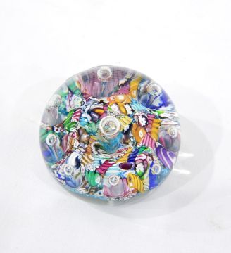 Glass paperweight, with scrambled millefiori canes surmounted by clear glass teardrops, with H signature cane for Paul Ysart, 7cm diameter