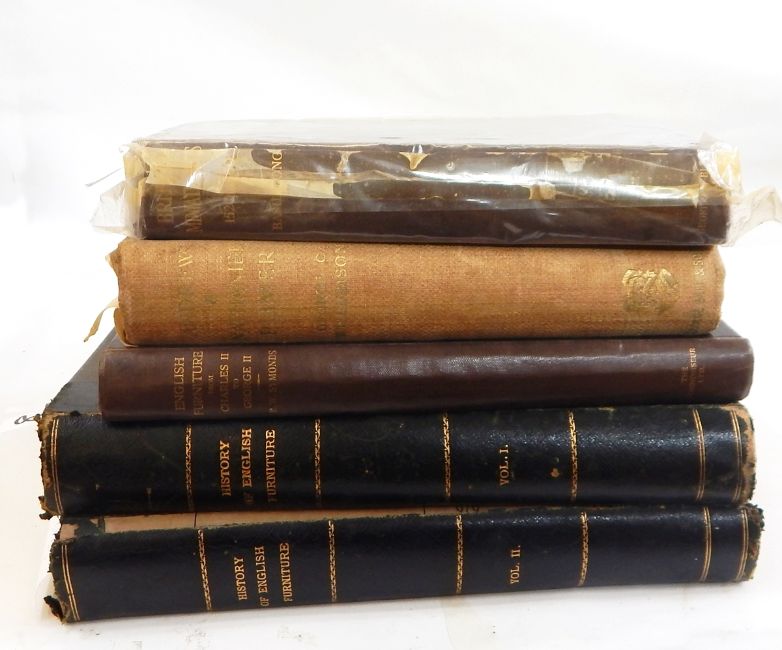 Macquoid, Percy "A History of English Furniture, the Age of Oak", Lawrence & Bullen 1904 and "The Age of Mahogany and Satinwood", Lawrence & Bullen 1906, colour frontis, various b/w photographic ills and colour pls with tissue guards, F, half leather, rather bumped and worn R W Symonds "English Furniture from Charles II to George II...", the Connoisseur Ltd 1929, colour front, various photographic ills and pls (3 vols) Long, Basil "British Miniaturists", London, Geoffrey Bles, 1929, plates at the back of the book, blue cloth, gilt titles, Folio and Williamson, George, C "Andrew and Nathaniel Plimer Miniature Painters, their lives and their works", George Bell & Sons 1903, plates throughout with tissue guards, blue cloth, gilt titles, very faded (5) Live Bidding: note: every page of every book is not checked, if you are unable to view yourself please ask for detailed information