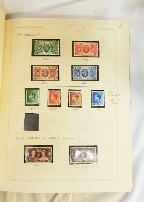 Green stamp album and contents of GB stamps, mainly mint (includes SG 536-539 MM and decimals)
