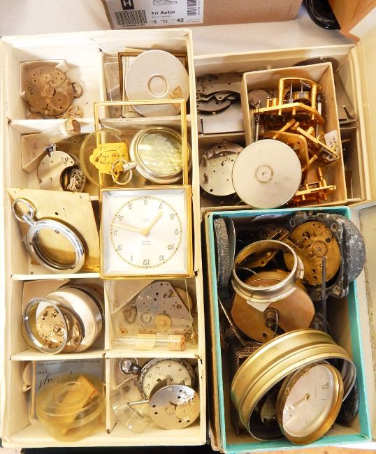 Large quantity of small clock, pocket watch and other watch parts (5 boxes)