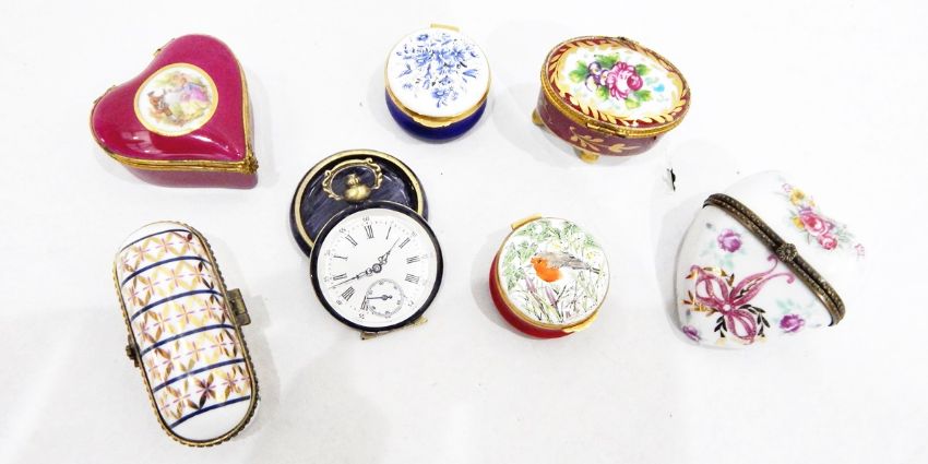 Quantity of porcelain and enamel trinket boxes (1 box)