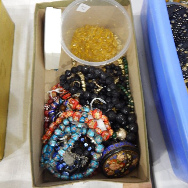 Quantity of Indian glass necklaces, black graduated bead necklace (probably jet) and other jewellery
