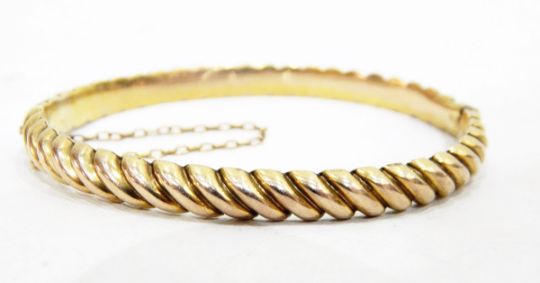 Gold-coloured metal hinged bangle, rope-pattern
