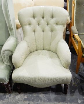 Button upholstered bedroom chair on turned supports, in the 19th century-style