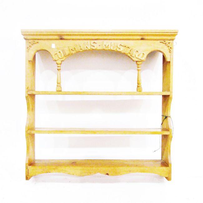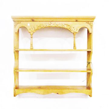 Pine open shelf plate-rack "Colmans Mustard', width 96cm