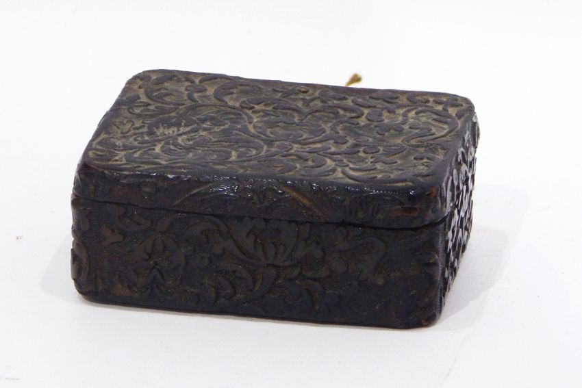 Early 19th century tortoiseshell snuffbox of rectangular form with foliate scroll decoration, 8cm long (with damage)