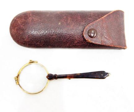 Pair of gold plated folding lorgnettes with gilt metal and tortoiseshell handle, with hard carrying case (PLEASE NOTE NEW ESTIMATE)