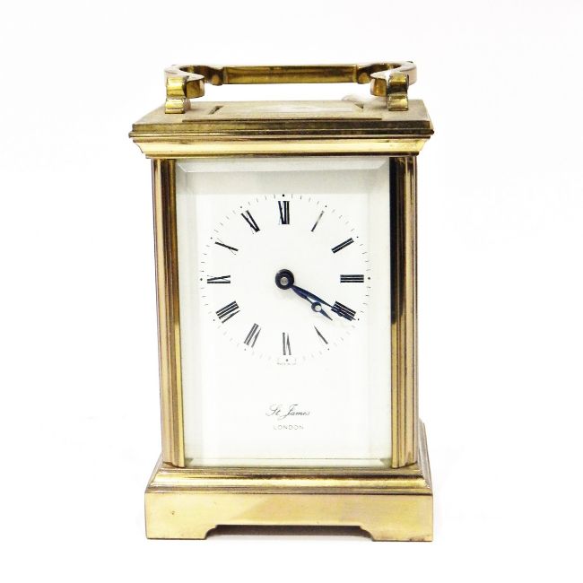 LOT WITHDRAWNBrass carriage clock, the dial with Roman numerals and inscribed St James, London, 11cm high