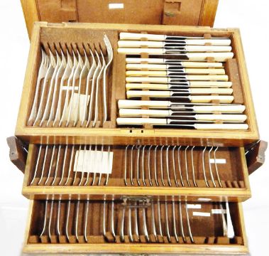 Silver plated canteen of flatware in fitted oak case (PLEASE NOTE NEW ESTIMATE)