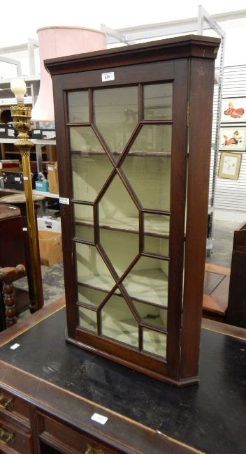 Late 19th century mahogany hanging corner cupboard enclosed by an astragal bi-glazed door, 51cm wide