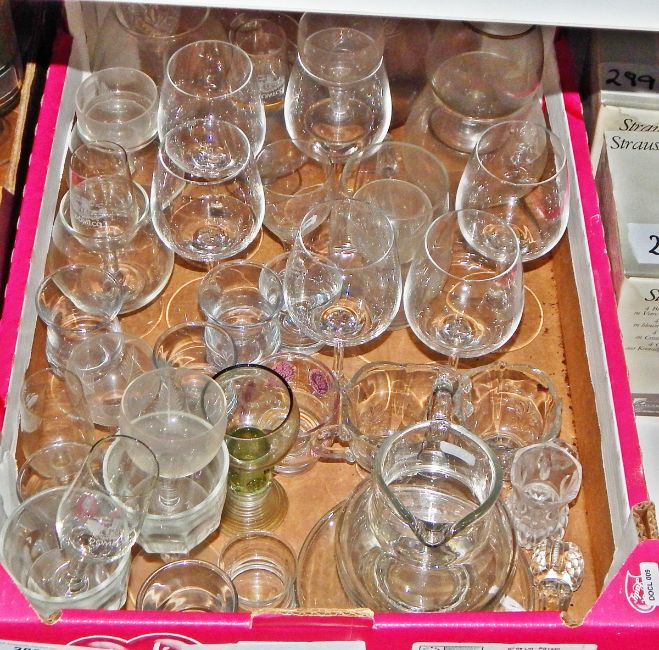 Quantity of assorted glassware including sundae dishes, lemonade glasses marked 'Culver', assorted wines and two boxed sets of glasses