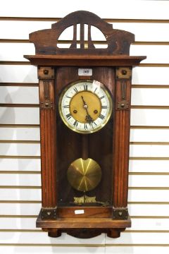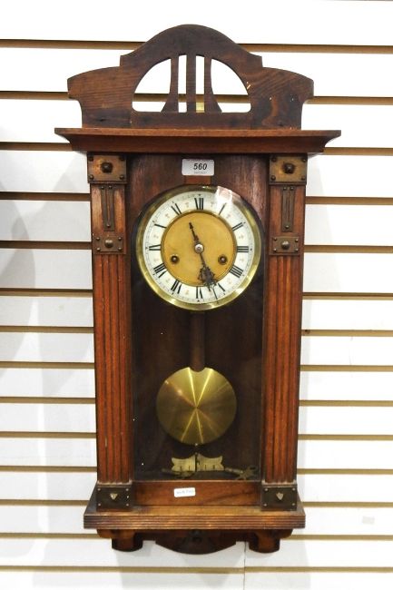 Late 19th century Vienna regulator wall clock, the enamelled chapter ring with Roman numerals, glazed case, eight-day striking movement, 66cm high