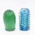 Victorian green glass dumpy weight, another blue and green airtwist decorative weight and a green flash cut glass bowl (3)