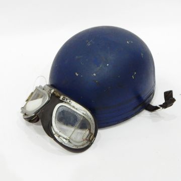 Vintage motorcycle helmet with the logo of a flying eagle and a pair of vintage motorcycle goggles (2)