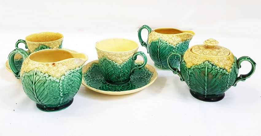 Wedgwood 'Cauliflower' part tea service includes two cream jugs and sugar bowl (damaged)
