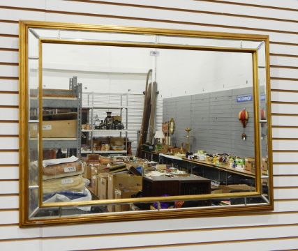 Giltwood contemporary wall mirror, rectangular with inner slip and bevel cut sections, 72cm x 99cm overall