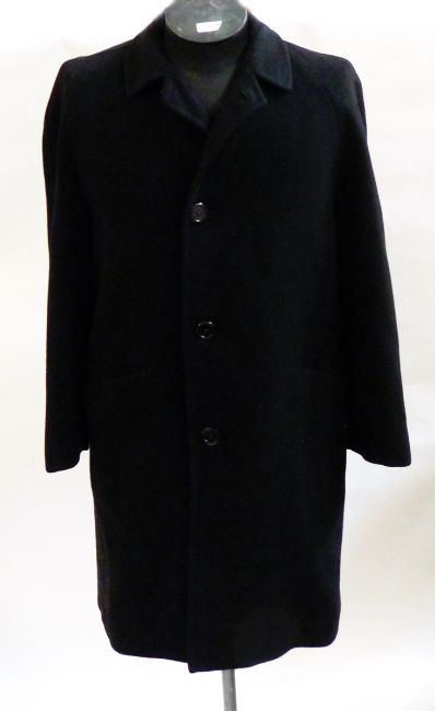 Gentleman's overcoat, the cloth made by Crombie, bearing the label 'W Redman, 10 Carrington Street, Glasgow', an Aquascutum black gentleman's overcoat and a suede overcoat with a mink collar (3)