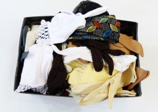 Large selection of vintage ladies' gloves and a vintage cardboard box marked 'The London Look' by Rael-Brook of England