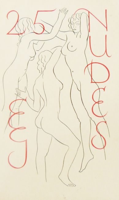 Eric Gill ( 1882-1940)Wood engravings'Title page in red and black' and ' Nude with plait' from '25 Nudes' publ. Dent and Sons 1938, unframed, 22 x 14 cms (2)