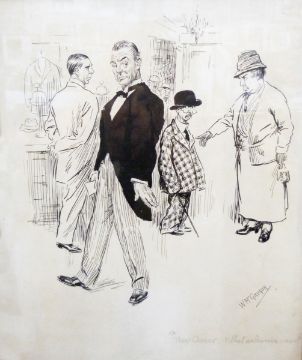 W McGregor (early 20th century) Three pencil sketches and four pen and ink sketches, seven cartoons of comical and political scenes, the largest 36cm x 28cm (7)
