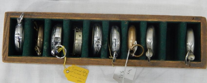 Hamilton Watch Company WWII navigational GCT military pocket watch, the back inscribed indistinctly, the black dial with 24-hour Arabic numerals, white hands and seconds hand, button winding with scroll loop and various other pocket watches including silver examples, one by Smiths, etc.