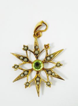 Early 20th century gold-coloured pendant of star design set with a central circular mixed cut peridots