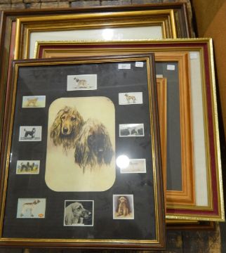 Various pictures relating to Afghan hounds, two botanical prints, an embroidered picture and one other large framed print (7)