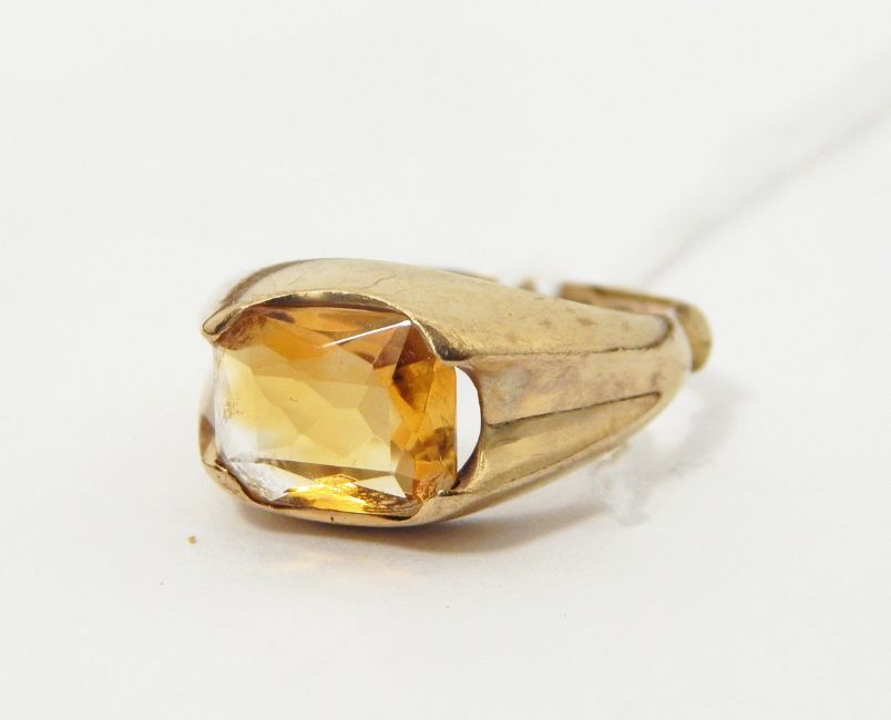 9ct gold citrine ring, set with a single cushion cut citrine (shank cut)