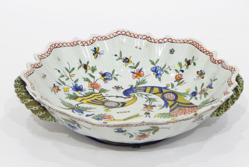 LOT WITHDRAWN Antique Rouen faience dish with typical painted decoration