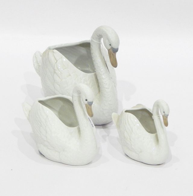 Graduated set of three Nao by Lladro porcelain swan vases