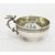 White metal cup of shallow circular form, decorated with a band of anthemion, with scroll handle surmounted by a bird, marked 'HT900', 5cm high