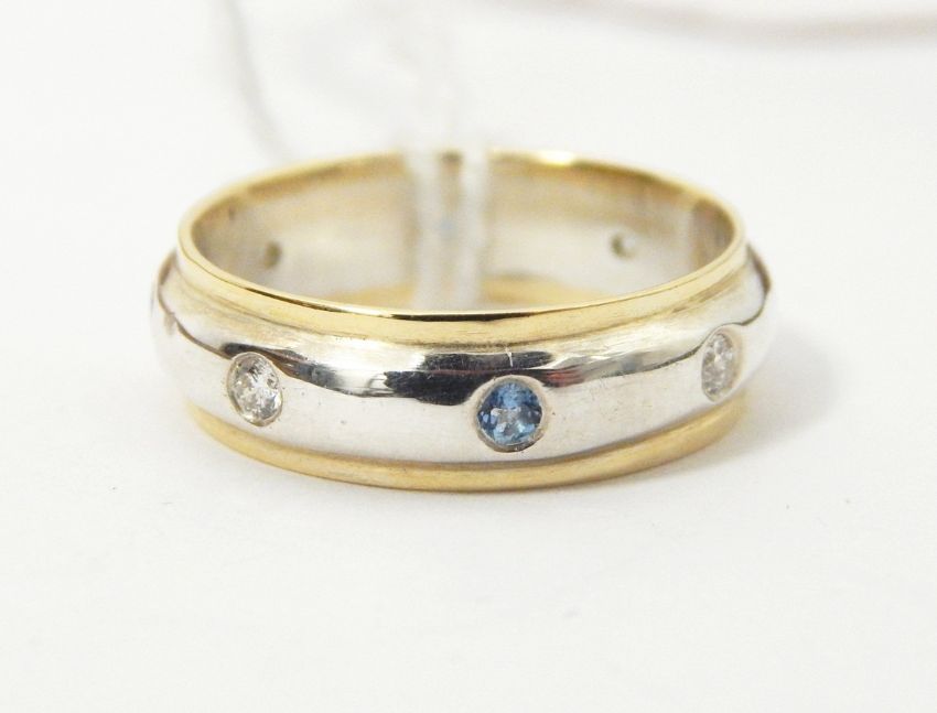 Silver gilt eternity ring by Gabriella Lane, set with alternating aquamarines and diamonds