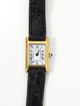 Lady's Raymond Weil gold plated strap watch, the rectangular dial with Roman numerals, on black crocodile-effect leather strap