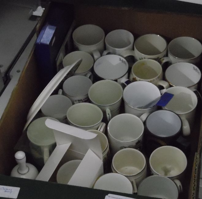 Large quantity of royal commemorative mugs (1 box)