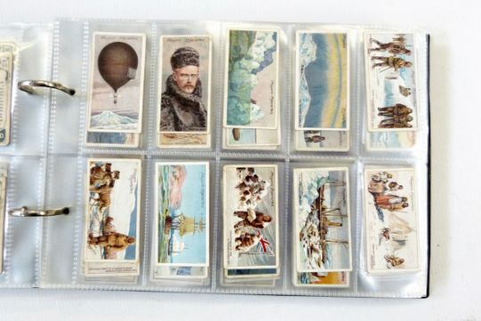 Two albums and contents of cigarette cards including 23 of 50 from a set of Ringer's cigarettes of 'Dog Breeds', a Wills cigarettes part '1911 Coronation series' set, a Fry's set of 50 'Chocolate' cards in the 'Ancient Sundial' set, Mitchell's cigarettes 'Statues and Monuments' set, Turf cigarette cards including 'Sports Records' set, a Player's cigarettes set of 25 'Wrestling and Jujitsu' series, Player's series of 25 'Those Pearls of Heaven' set, Downland tobacco cards of 'Jockeys, Horses and Racecourses', Godfrey Philips cards of 'First Aid' and various other smaller albums and cigarette card catalogues and pamphlets