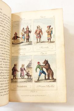 Aspin, J "Cosmorama; a view of the costumes and peculiarities of all nations", London, J Harris, St Paul's Churchyard (1827), various coloured plates depicting costume of different nations, contemporary inscription on ffep dated 1828, bds quarter-leather rather rubbed and worn