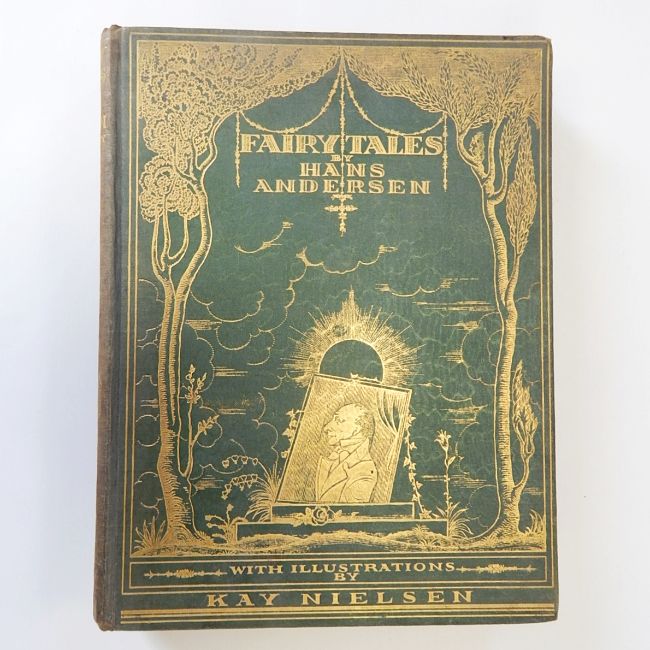 Nielsen, Kay (ills) "Fairy Tales by Hans Andersen", Hodder & Stoughton, colour plates tipped in, hinges cracked and some foxing, plates all clean, other illustrations and decorations, front ep inscription dated 1929 and ink drawing over the cherubs on ep's, green cloth, gilt titles and decorations, the spine faded