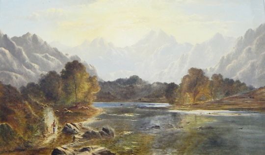 In the manner of Charles Robert Leslie (1794-1859) Oil on canvasRiver landscape scene, signed lower left, 45cm x 80cm