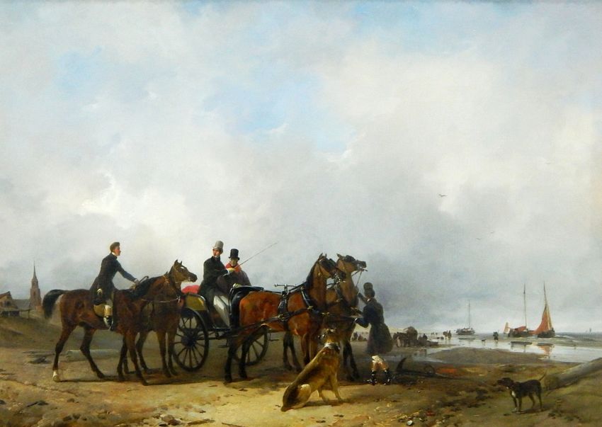 Joseph Moerenhout (1801-1875) Oil on canvasFigures on a seashore (entourage), in possible collaboration with Andreas Schelfhout, signed Moerenhout and dated 1854 lower left, 60cm x 83cm