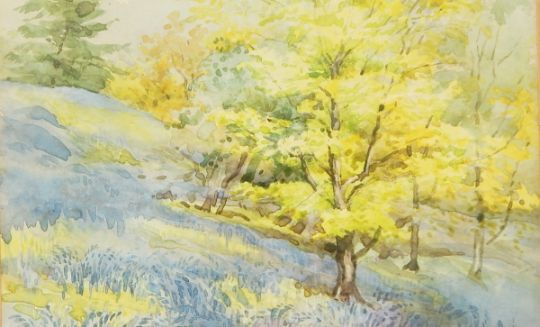 20th century schoolWatercolour drawing"Bluebells and Young Oak Trees at Ambleside", unsigned, 14cm x 22cm 20th centuryWatercolour drawingRiver landscape, unsigned, 21cm x 27.5cm (2)