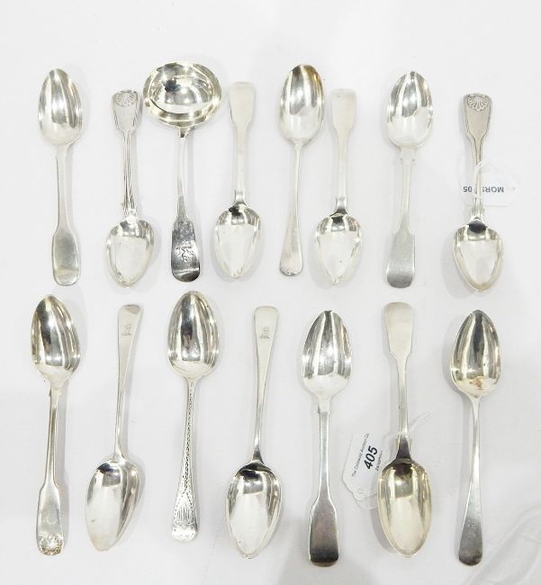 Quantity of assorted Victorian tablespoons and a ladle, 22oz total approx.