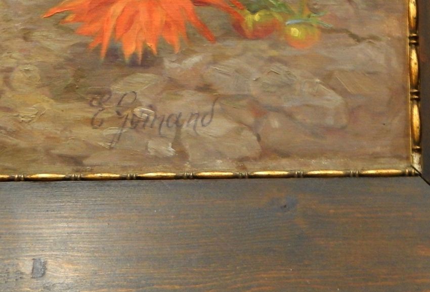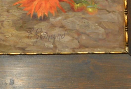 Emma Guinand (20th century school) Oil on canvas Dahlias in a basket, signed lower right, 47.5cm x 66.5cm