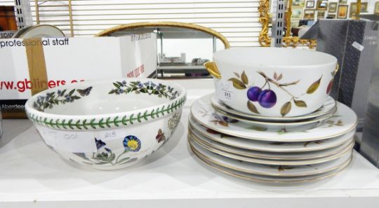 Large Portmeirion 'Botanic Garden' fruit bowl, a Royal Worcester 'Evesham' casserole dish (no lid), six Evesham dinner plates and two other Evesham plates
