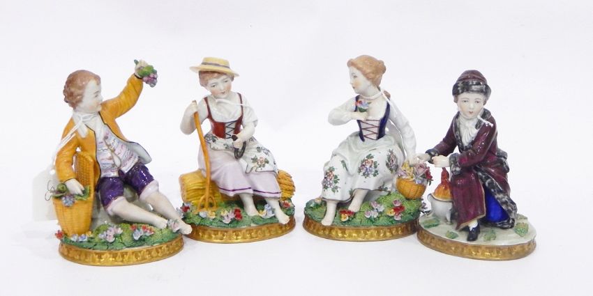 Set of four Sitzendorf figures "Allegorical of the Four Seasons", 12.5cm high approx., with blue mark to base (4)