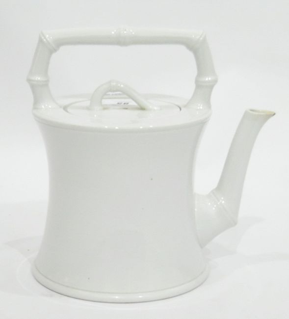 Chinese blanc de chine teapot with bamboo shaped handle, 19.5cm high (hairline crack to body)