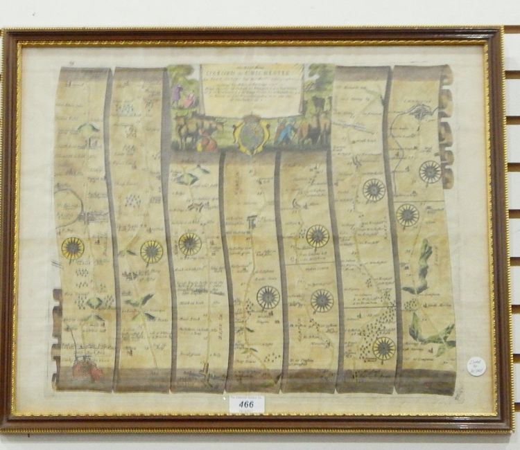 John Ogilby Strip map, circa 1675, the Road from Oxford to Chichester, hand-coloured