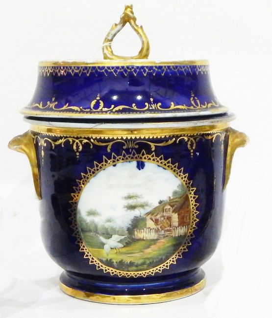 Late 18th century Coalport 'Animal' pattern ice pail decorated with fable scene of goose and fox, the blue ground with gilt decoration, 25cm high approx.