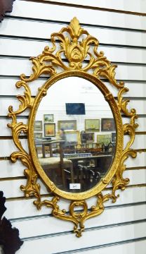 Gilt painted metal oval mirror, 74cm x 46cm approx.