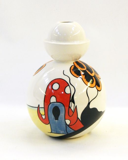 Three items of Lorna Bailey to include a teapot 'Bursley Way' pattern, 17cm high another teapot, 17cm high and a vase 'Wulstan Drive', 20cm high (3)