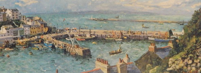 After Ernest Knight (20th century school) Colour print Brixham Harbour, Devon, view from artist's studio 49cm x 75cm